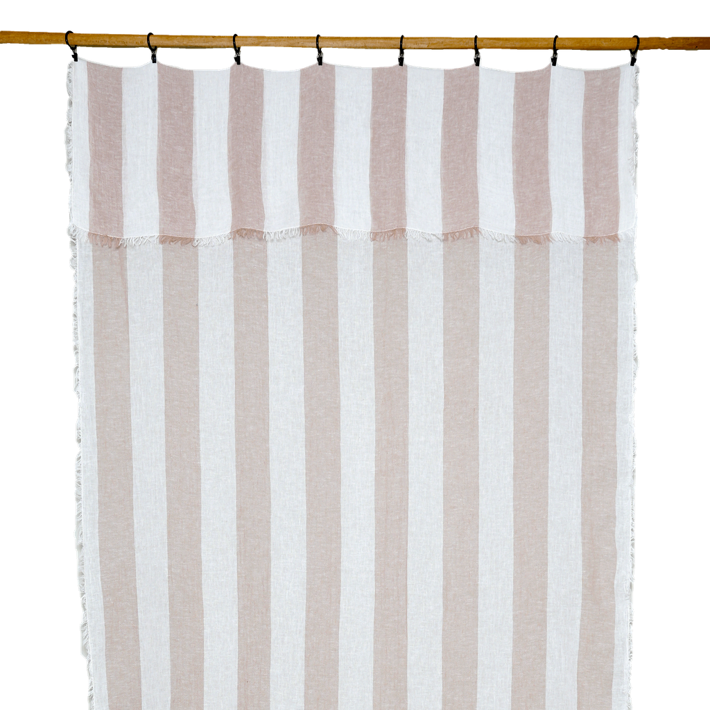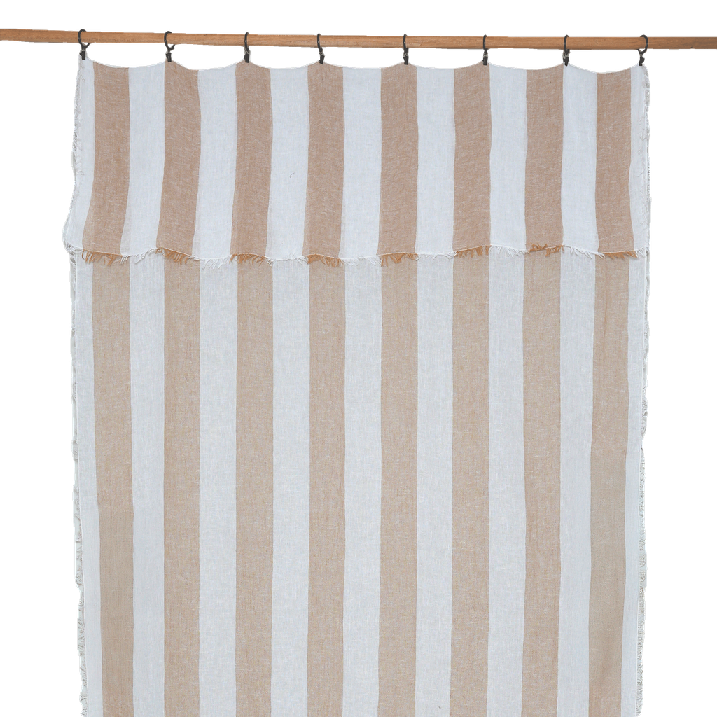 Laissez-vous séduire par le rideau Turin, confectionné en voile mêlant 50 % lin et 50 % coton, pour une atmosphère à la fois naturelle, douce et lumineuse. Son tissage rayé apporte du rythme et du caractère tout en conservant une grande légèreté visuelle.