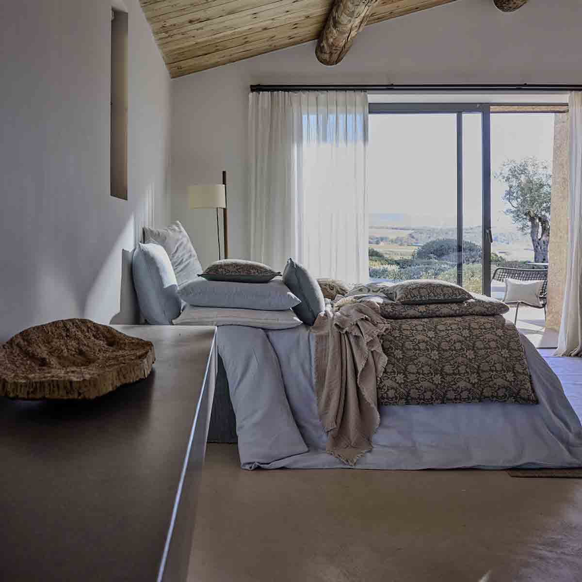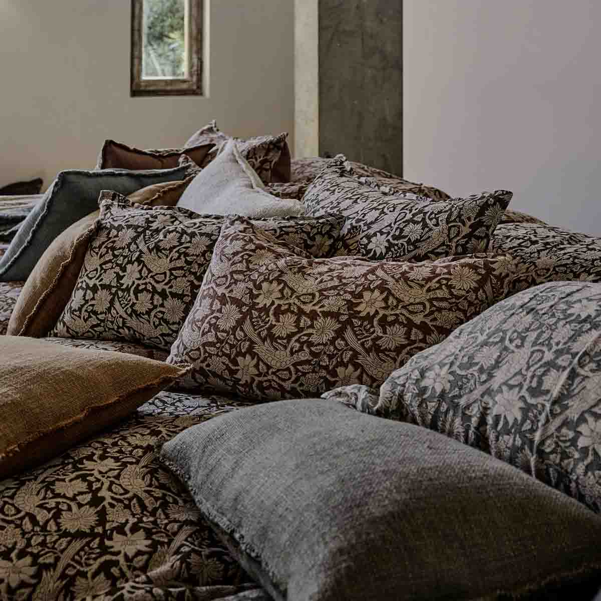 Apportez une touche chaleureuse et raffinée à votre chambre avec la housse d’édredon Jaipur signée Haomy – Harmony Textile. Son élégant imprimé décoratif sur lin lavé évoque un esprit artisanal et intemporel, idéal pour sublimer un lit ou un canapé.